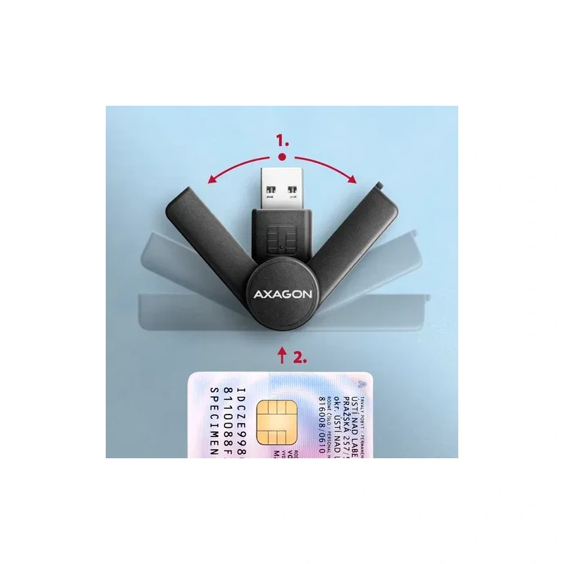 AXAGON PocketReader on kokkuklapitav taskuformaadis ID-kaardilugeja, mis pakub mugavat ja turvalist lahendust isikutuvastuseks ja muudeks toiminguteks.