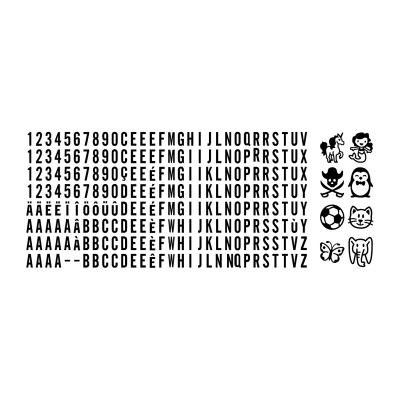 Individuaalselt kohandatav: Tekstiilitempliga saab luua jäljendi kuni 3 rida, milles on 15 märki igas reas (4 mm kõrgusega). Komplektis on kaasas mitmekesine märgistik (tähed, numbrid ja erimärgid), mis annab sulle vabaduse luua täpselt sellise teksti nagu vaja.