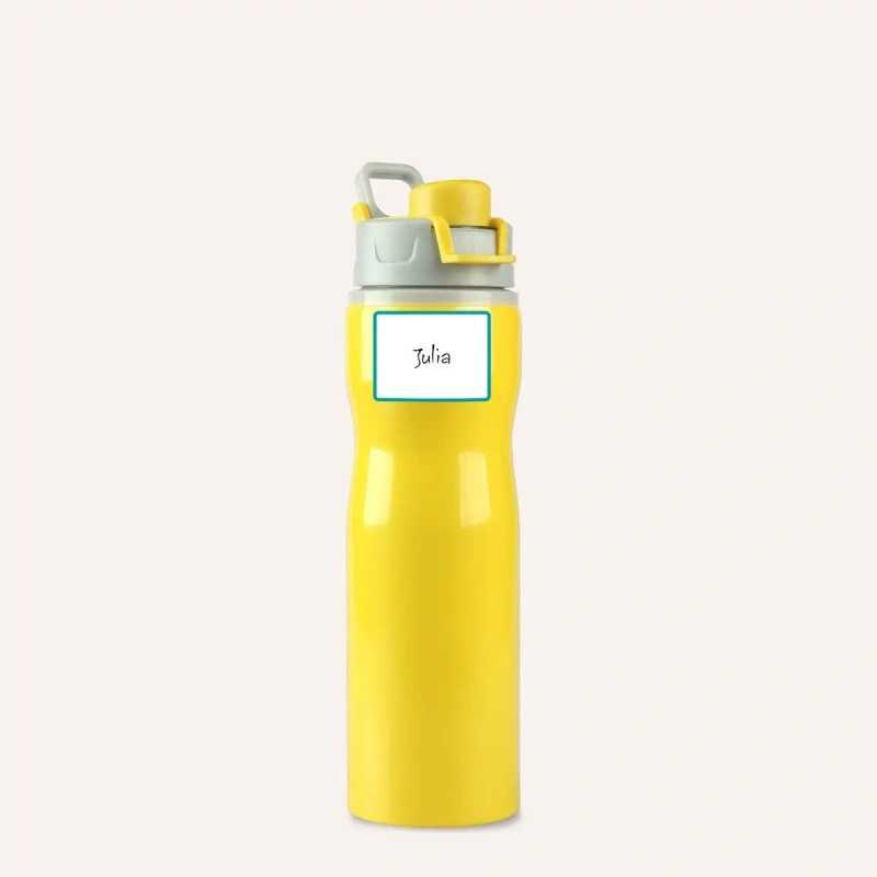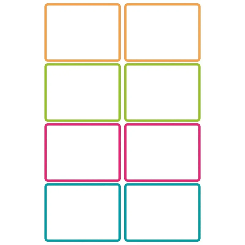 Need värviliste raamidega kleebised aitavad tagada, et pudelid, karbid, õpikud ja muud esemed ei läheks kaduma ega vahetusse.